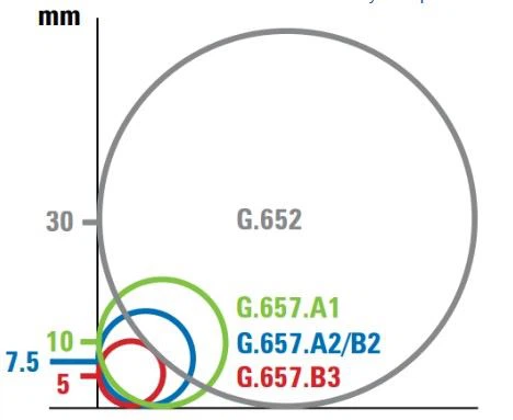 Este cable incorpora fibra G.657B3, reconocida por su excelente desempeño en radios de curvatura reducidos, permitiendo rutas de instalación ajustadas sin pérdidas significativas.