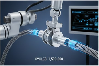 Evalúa la resistencia del cable ante movimientos repetitivos. Determina la integridad de la fibra y la calidad del diseño bajo ciclos continuos de flexión.